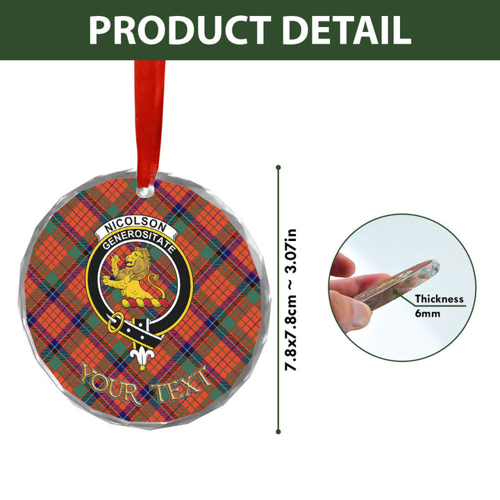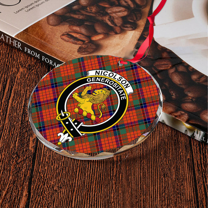 Nicolson Ancient Clan Badge Tartan Glass Ornament