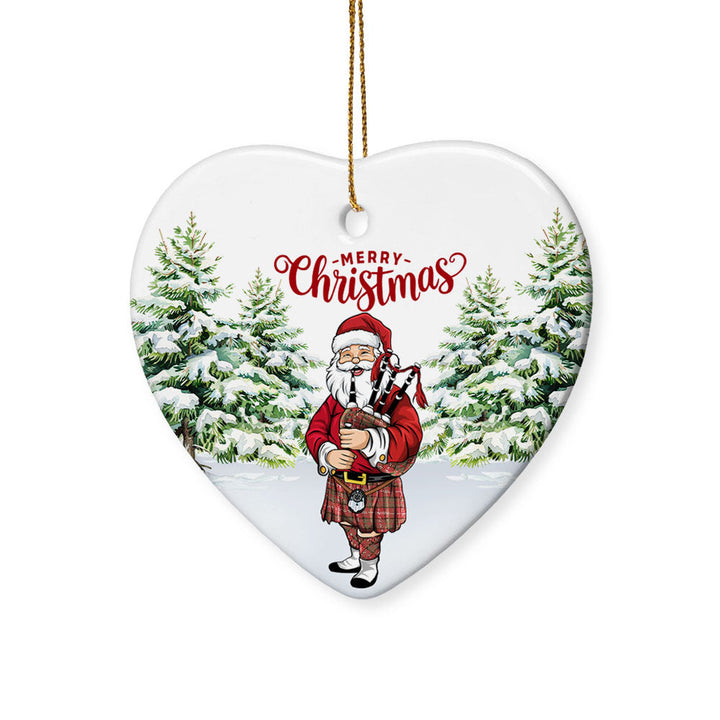 Add a touch of heritage to your celebrations with the Nisbet (Nisbit) Weathered Tartan Ceramic Ornament Santa. Featuring a festive Scottish Santa Claus Bagpipe design, this ornament is the perfect keepsake for decorating your home or gifting to loved ones.