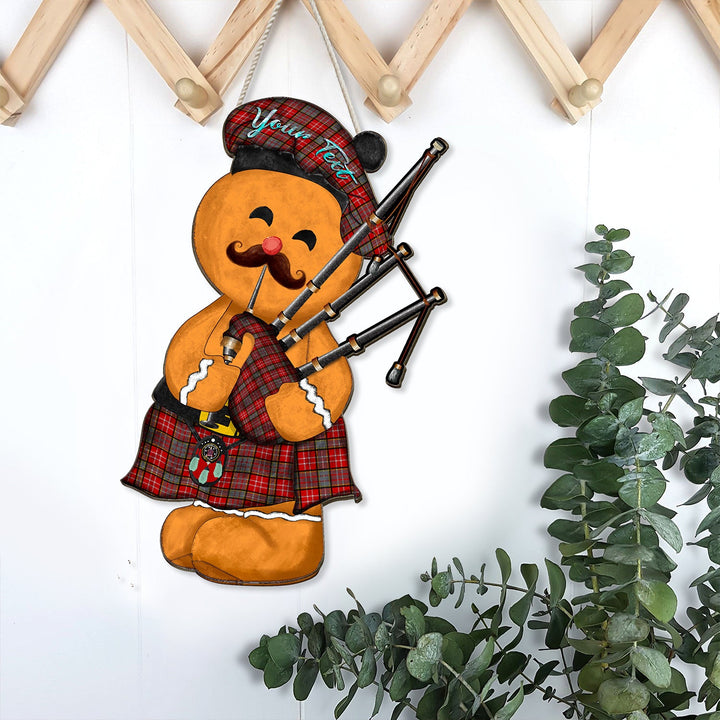 Ogilvie Modern Crest Tartan Wooden Sign Gingerbread Bagpipe Personalized