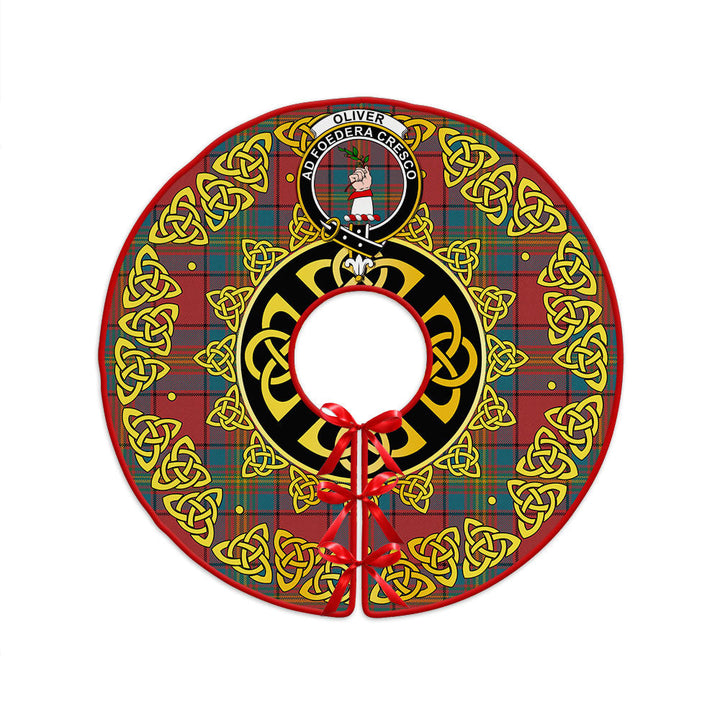Oliver Ancient Clan Badge Tartan Christmas Tree Skirt Golden Celtic Heritage