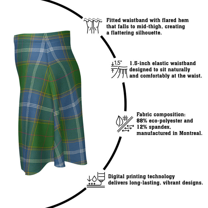 Step out in heritage style with the Pringle Ancient Clan Badge Tartan Flared Skirt. Featuring vivid tartan prints, a flattering high waist, and eco-friendly performance fabric, this skirt blends comfort and Scottish pride in every detail.