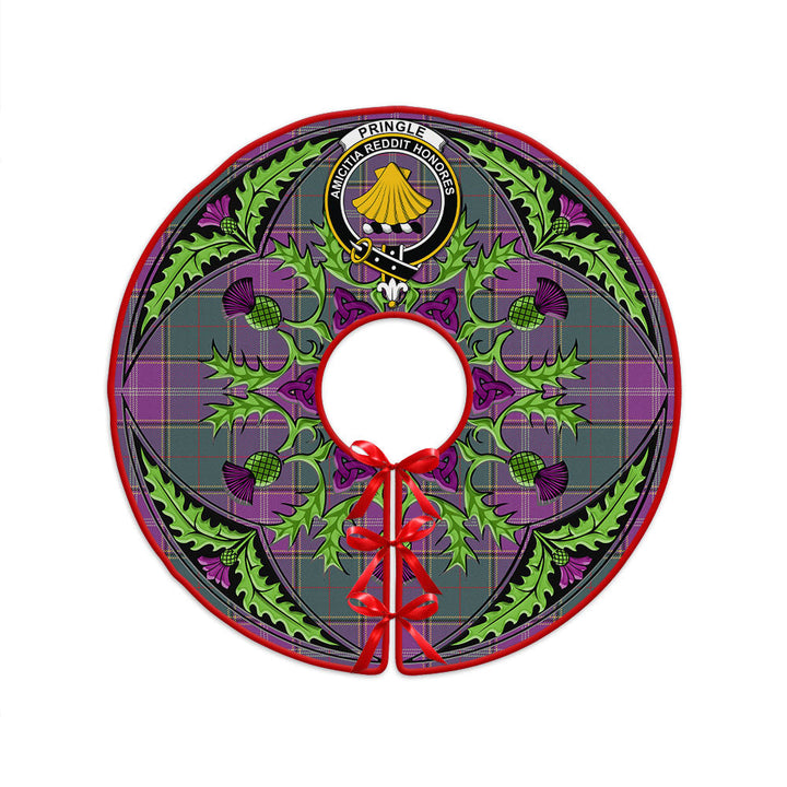 Pringle Weathered Clan Badge Tartan Christmas Tree Skirt Scottish Thistle Design
