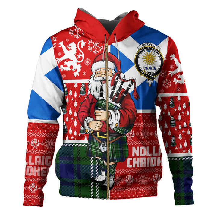 Purves Clan Badge Tartan Hoodie Scotland Christmas Santa
