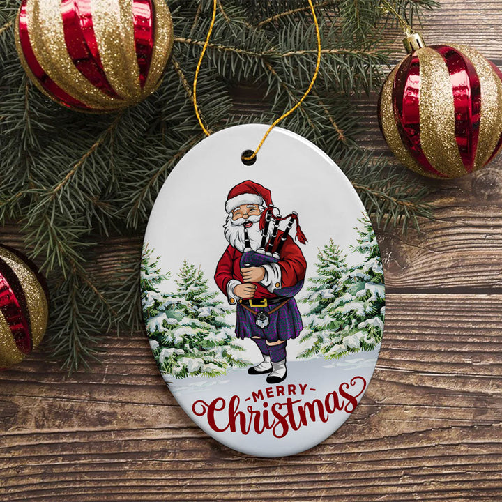 Add a touch of heritage to your celebrations with the Rae Modern Tartan Ceramic Ornament Santa. Featuring a festive Scottish Santa Claus Bagpipe design, this ornament is the perfect keepsake for decorating your home or gifting to loved ones.