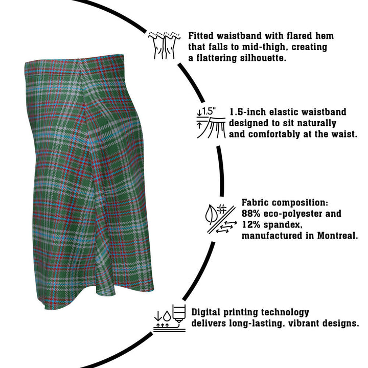 Step out in heritage style with the Ralston US Modern Clan Badge Tartan Flared Skirt. Featuring vivid tartan prints, a flattering high waist, and eco-friendly performance fabric, this skirt blends comfort and Scottish pride in every detail.
