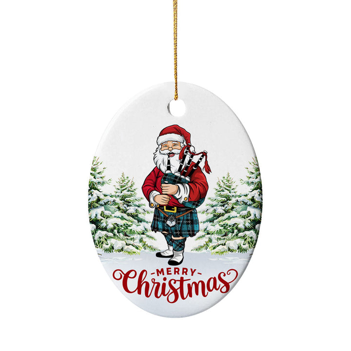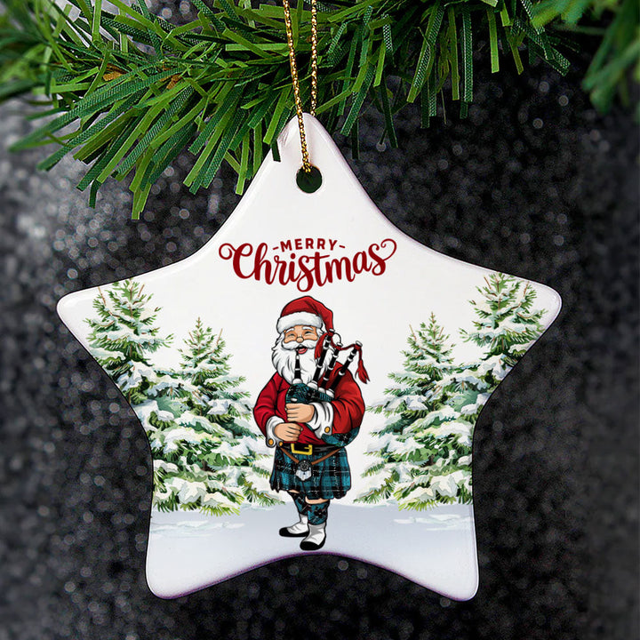 Add a touch of heritage to your celebrations with the Ramsay Blue Ancient Tartan Ceramic Ornament Santa. Featuring a festive Scottish Santa Claus Bagpipe design, this ornament is the perfect keepsake for decorating your home or gifting to loved ones.