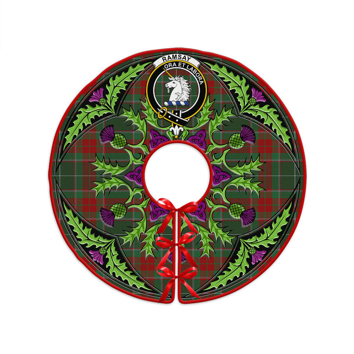 Bring heritage and warmth to your holiday season with the Ramsay Green Modern Clan Badge Tartan Christmas Tree Skirt Scottish Thistle Design. Crafted from premium fabric and finished with vibrant prints, it adds Scottish charm to any Christmas tree display.