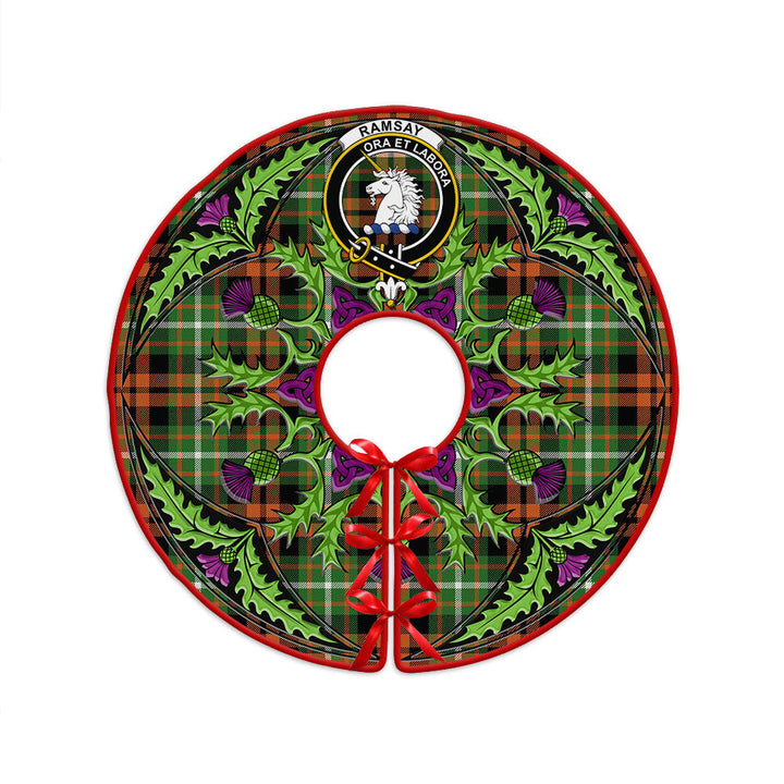 Ramsay Orange Ancient Clan Badge Tartan Christmas Tree Skirt Scottish Thistle Design