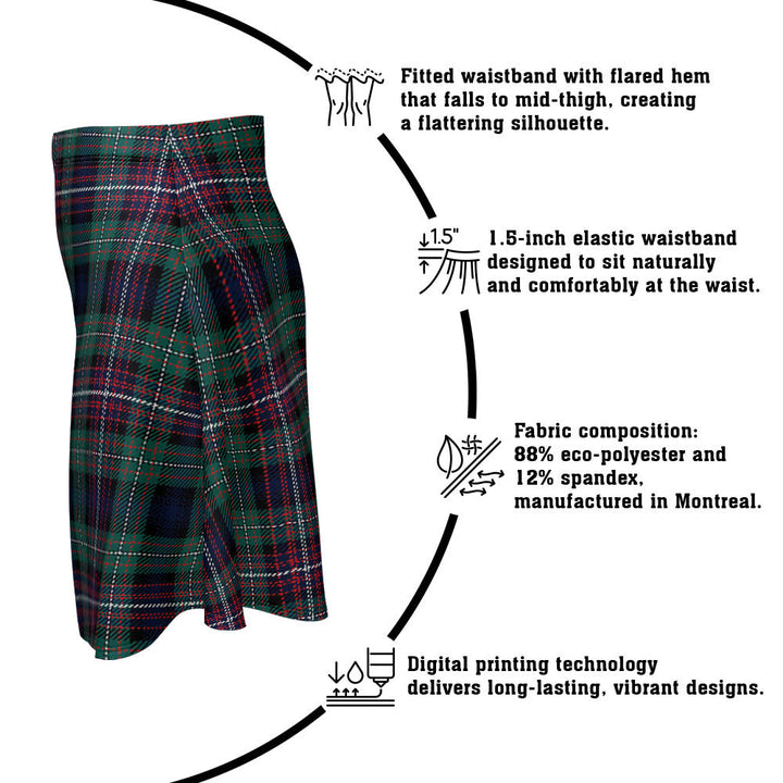 Step out in heritage style with the Rankin (Dalgliesh) Modern Clan Badge Tartan Flared Skirt. Featuring vivid tartan prints, a flattering high waist, and eco-friendly performance fabric, this skirt blends comfort and Scottish pride in every detail.