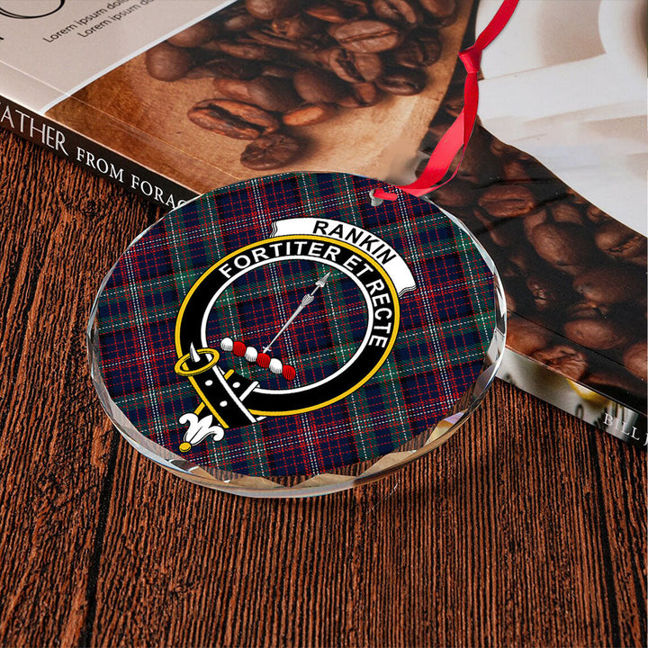 Rankin Modern Clan Badge Tartan Glass Ornament