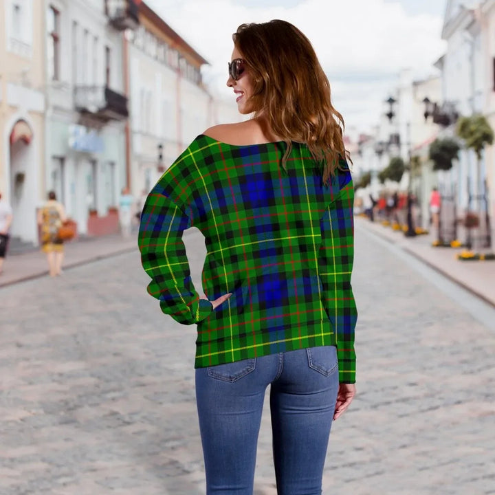 Rollo Modern Tartan Classic Women Off Shoulder Sweatshirt