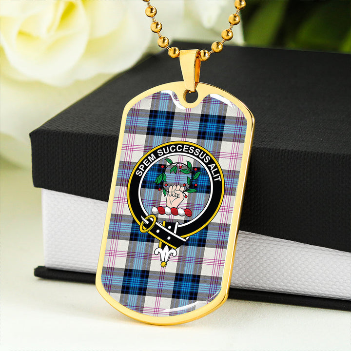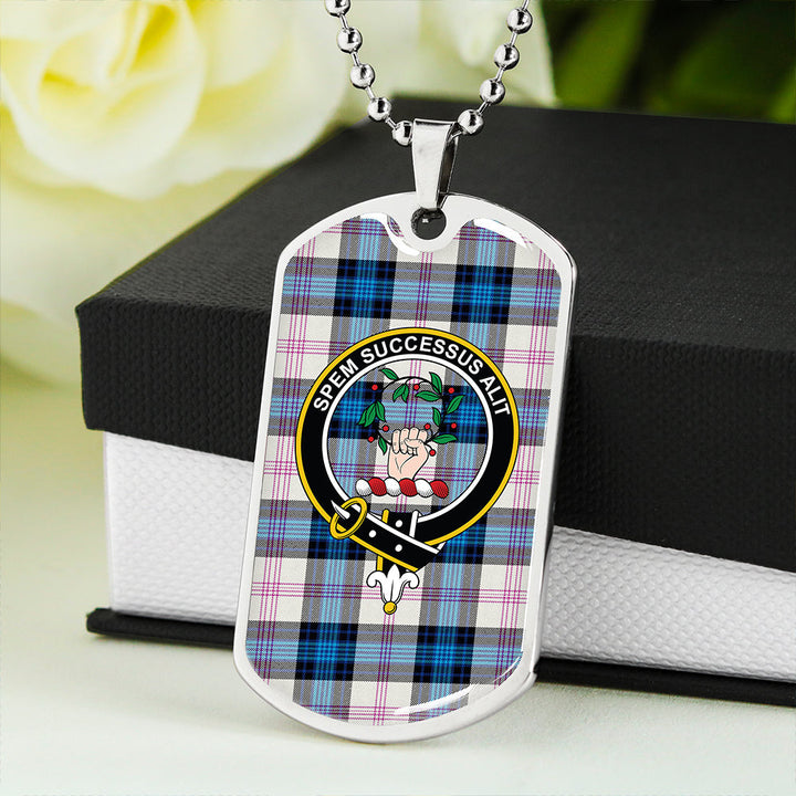 Ross Dress Blue Modern Clan Badge Classic Tartan Dog Tag Necklace