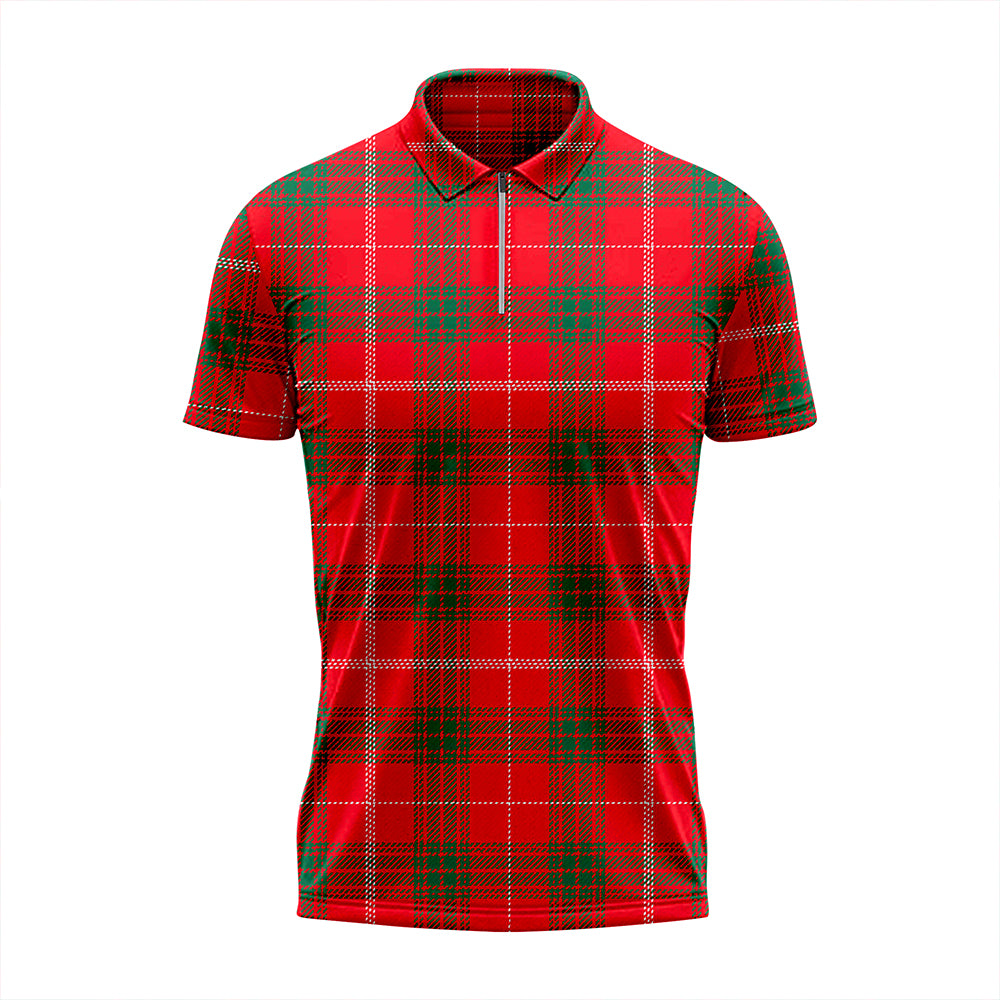 Rothesay Red Modern Tartan Classic Lapel Zip Short Sleeve Polo