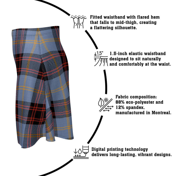 Step out in heritage style with the Rutherford Ancient Clan Badge Tartan Flared Skirt. Featuring vivid tartan prints, a flattering high waist, and eco-friendly performance fabric, this skirt blends comfort and Scottish pride in every detail.