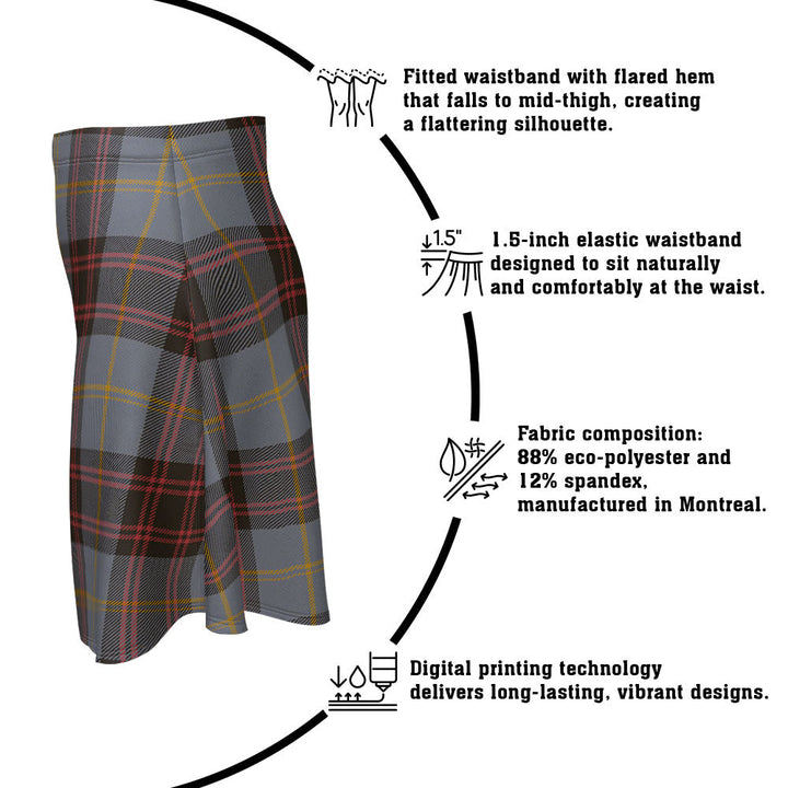 Step out in heritage style with the Rutherford Weathered Clan Badge Tartan Flared Skirt. Featuring vivid tartan prints, a flattering high waist, and eco-friendly performance fabric, this skirt blends comfort and Scottish pride in every detail.