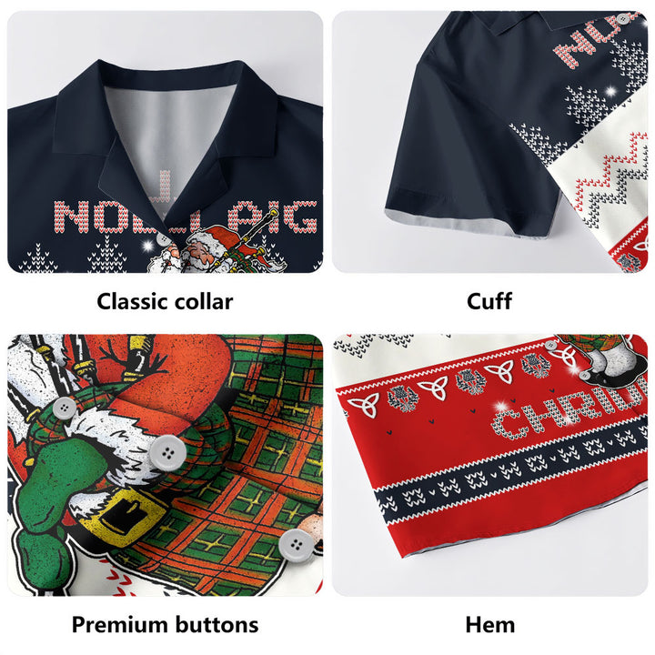 Scotland Hawaiian Shirt Santa Highland Stroll with Bagpipes and Cheer