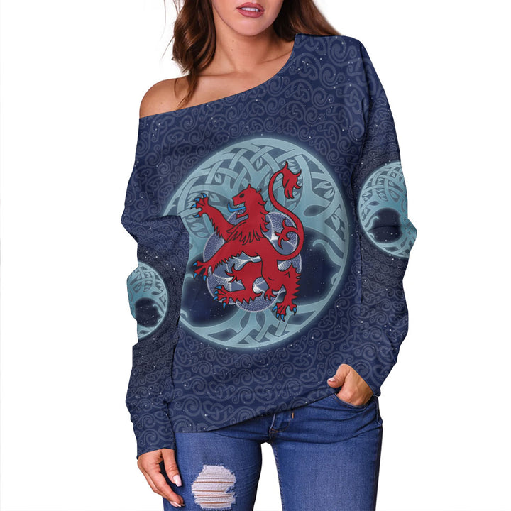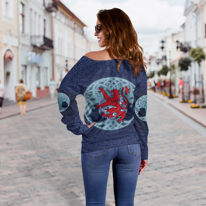 Scotland Off Shoulder Sweatshirt Celestial Rampant Lion Mystic Knot Circle Legacy