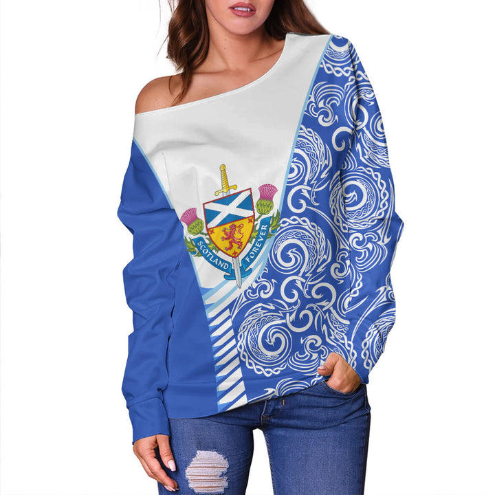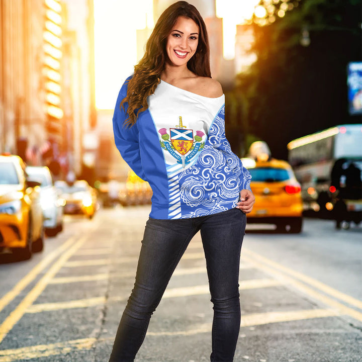 Scotland Off Shoulder Sweatshirt Ocean Crest Saltire Shield Sword Thistle Legacy Forever Edition