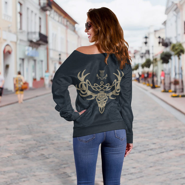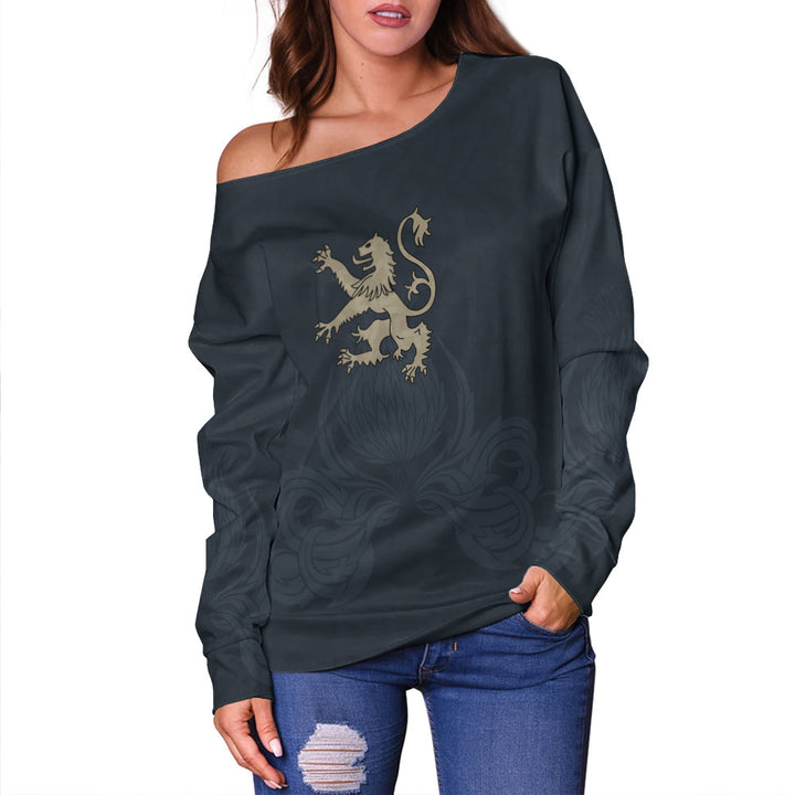 Scotland Off Shoulder Sweatshirt Twin Lion Crest Midnight Thistle Heritage Edition