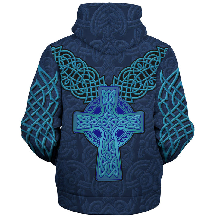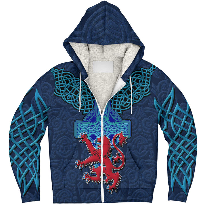 Scotland Sherpa Hoodie Highland Valor The Crimson Lion and Celtic Cross