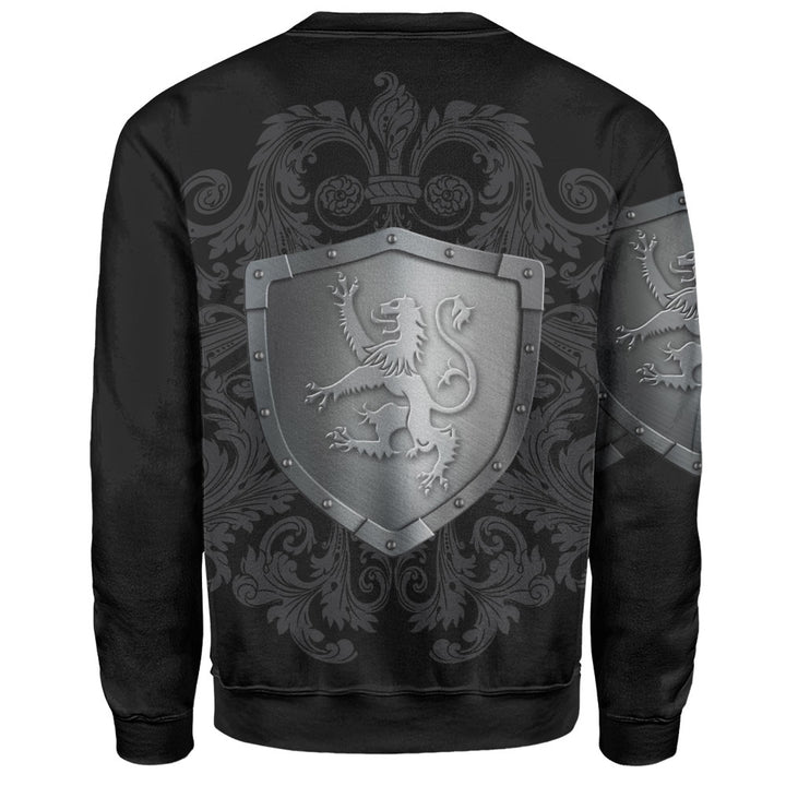 Scotland Sweatshirt Medieval Warrior with Steel Gauntlet Holding Sword and Shield Lion