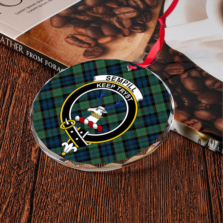 Sempill (Semple) Modern Clan Badge Tartan Glass Ornament