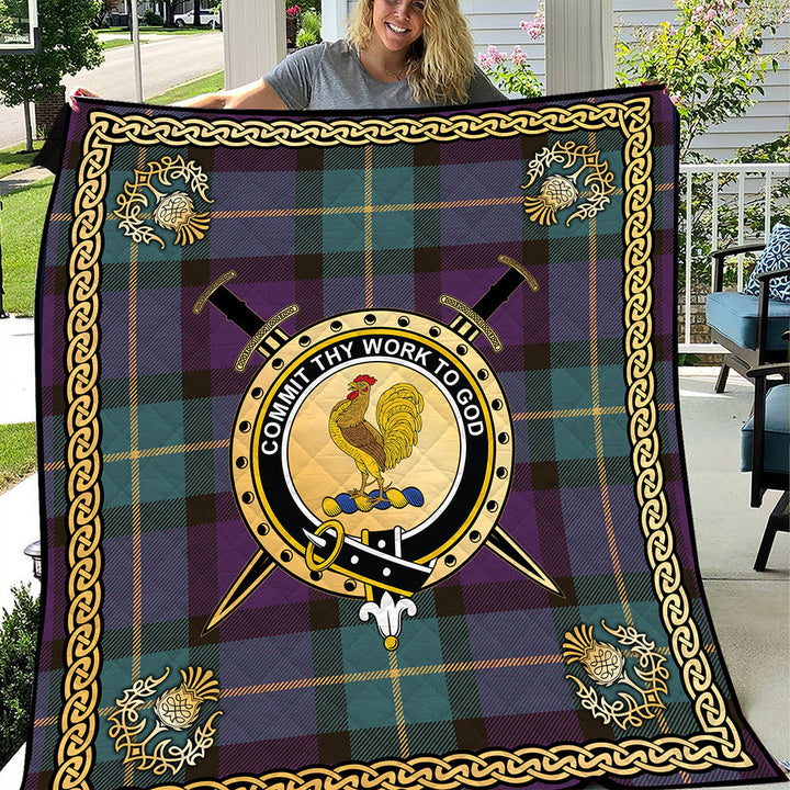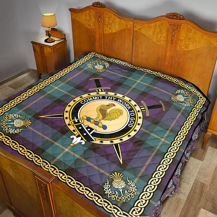 Sinclair of Ulster Weathered Clan Badge Tartan Premium Quilt Celtic Shield