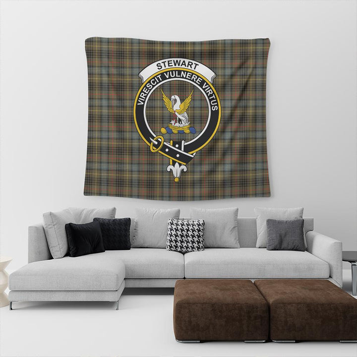 Stewart Hunting Weathered Tartan Classic Crest Tapestry