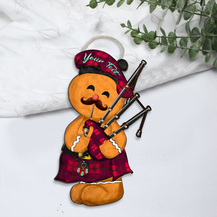 Stirling of Keir Modern Crest Tartan Wooden Sign Gingerbread Bagpipe Personalized