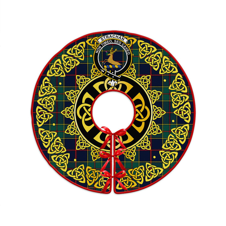 Strachan Modern Clan Badge Tartan Christmas Tree Skirt Golden Celtic Heritage