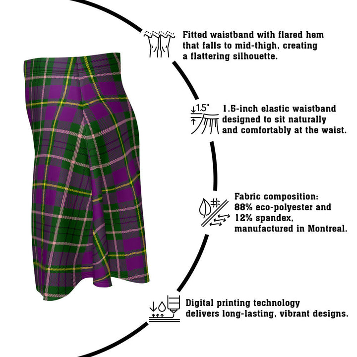 Step out in heritage style with the Tailyour Clan Badge Tartan Flared Skirt. Featuring vivid tartan prints, a flattering high waist, and eco-friendly performance fabric, this skirt blends comfort and Scottish pride in every detail.