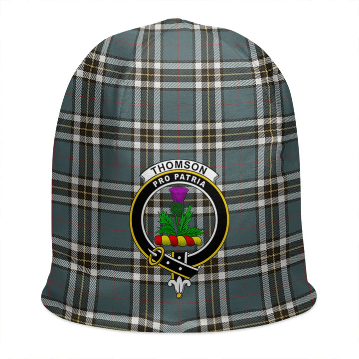 Thomson Blue (MacThomas Blue Thompson Dress) Weathered Clan Badge Tartan Beanie