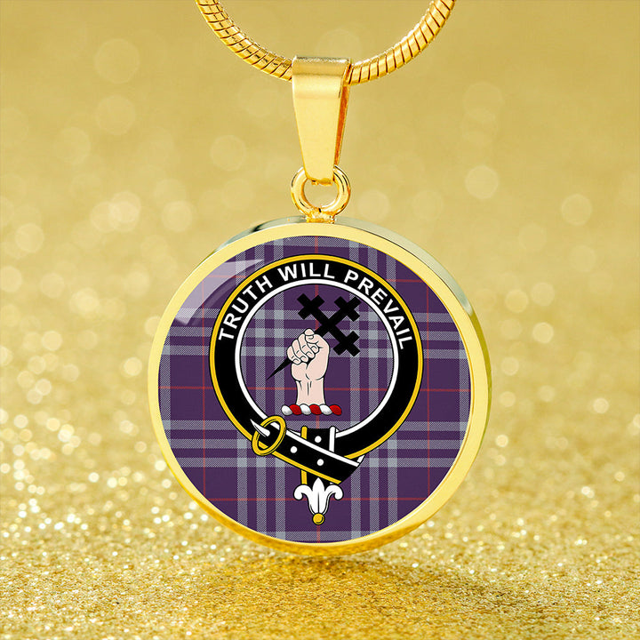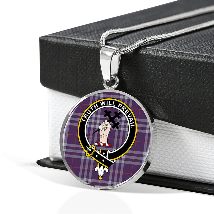 Thomson Navy (Thompson Navy) Weathered Clan Badge Tartan Classic Circle Necklace