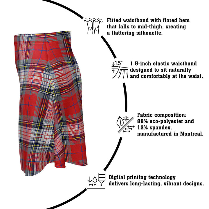 Step out in heritage style with the Warden Modern Clan Badge Tartan Flared Skirt. Featuring vivid tartan prints, a flattering high waist, and eco-friendly performance fabric, this skirt blends comfort and Scottish pride in every detail.