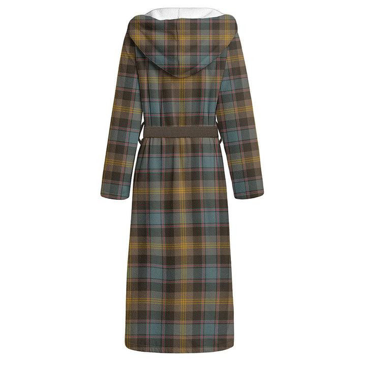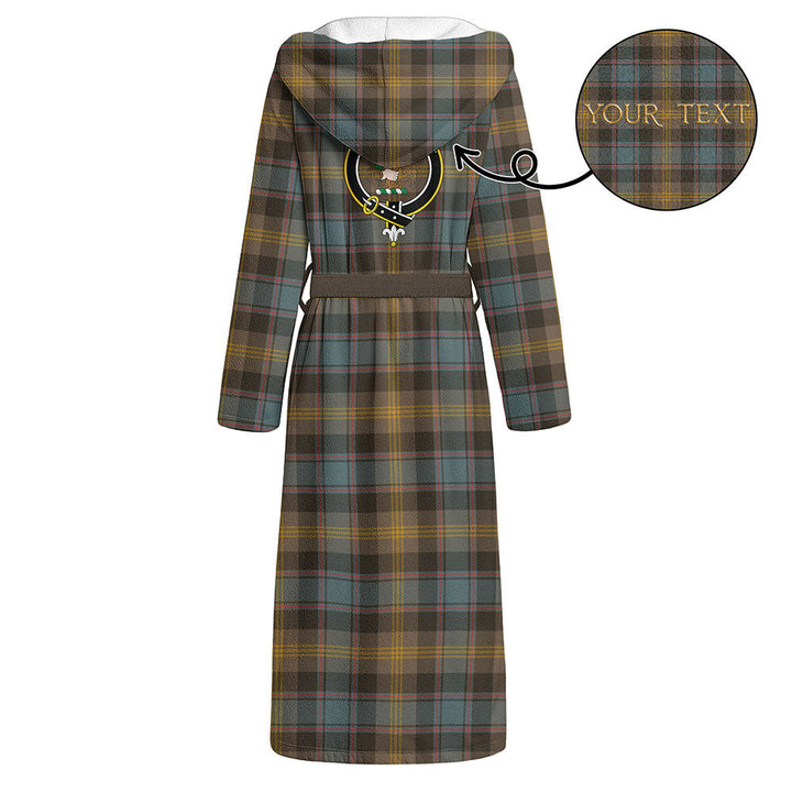 Watson (Wate Watt) Weathered Clan Badge Tartan Flannel Hooded Bathrobe