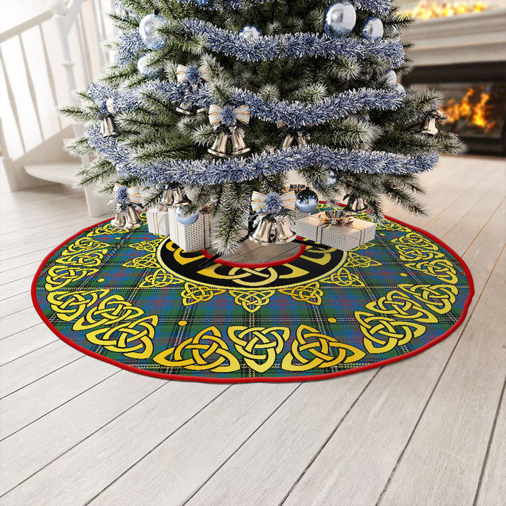 Wood Ancient Clan Badge Tartan Christmas Tree Skirt Golden Celtic Heritage