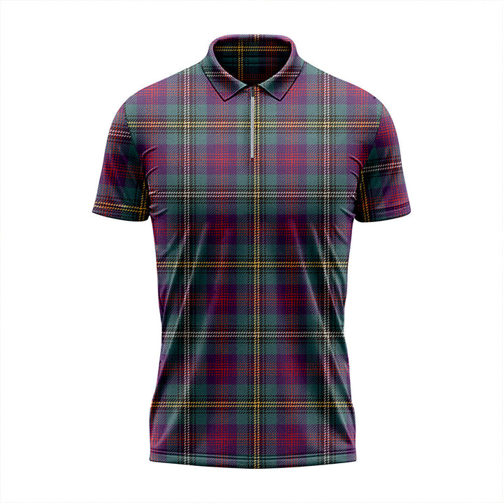 Wood Weathered Tartan Classic Lapel Zip Short Sleeve Polo