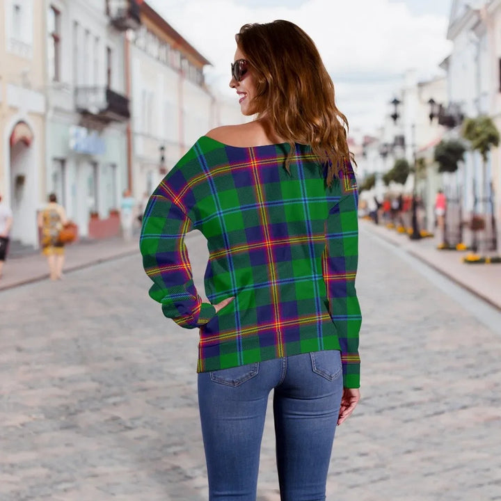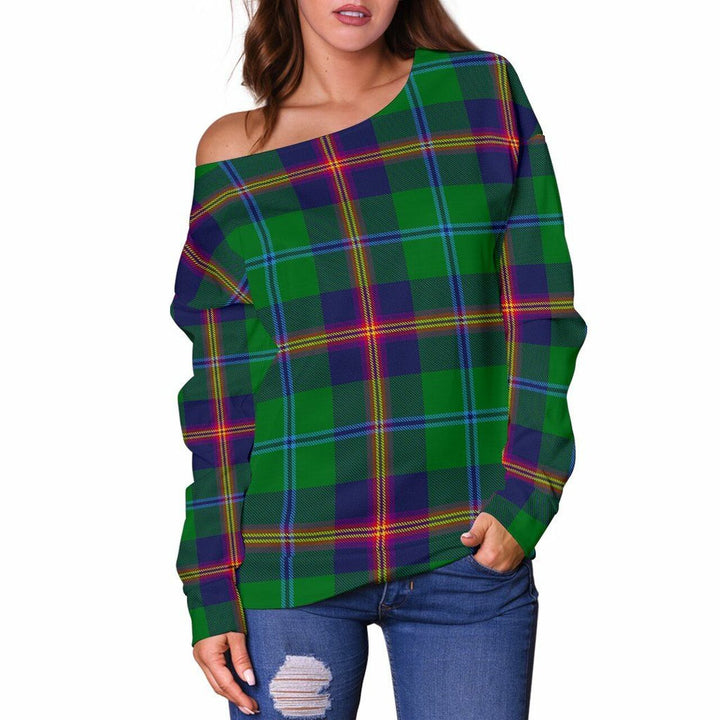 Young Modern Tartan Classic Women Off Shoulder Sweatshirt